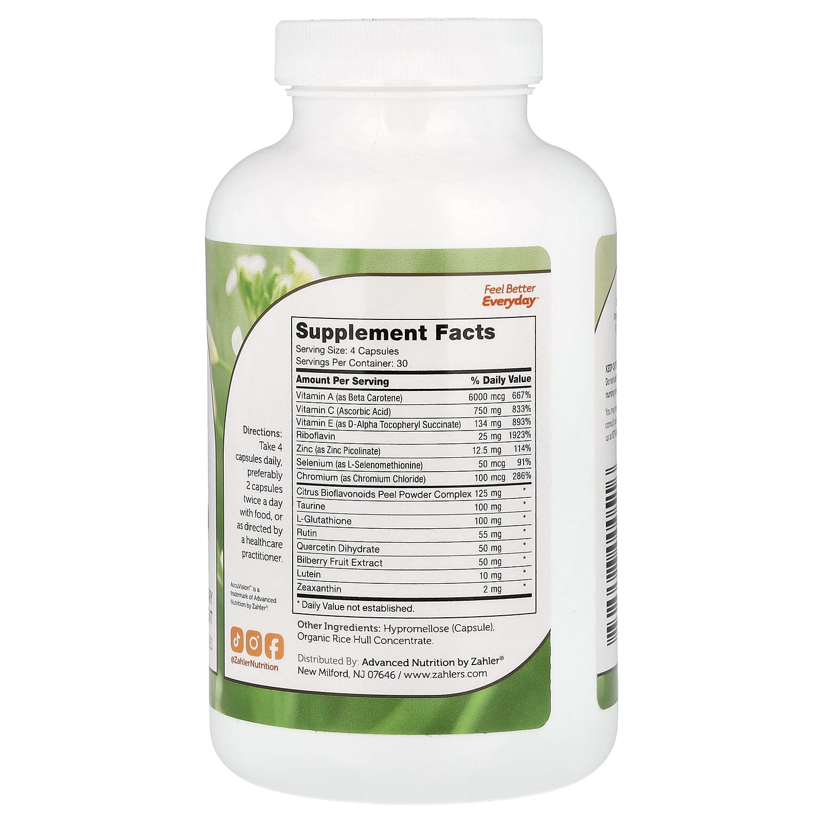 Zahler AccuVision™ Fórmula Avançada para a Saúde Ocular 120 Cápsulas – Zahler Suplementos Olhos, Ouvidos e Nariz Suplementos para os Olhos.