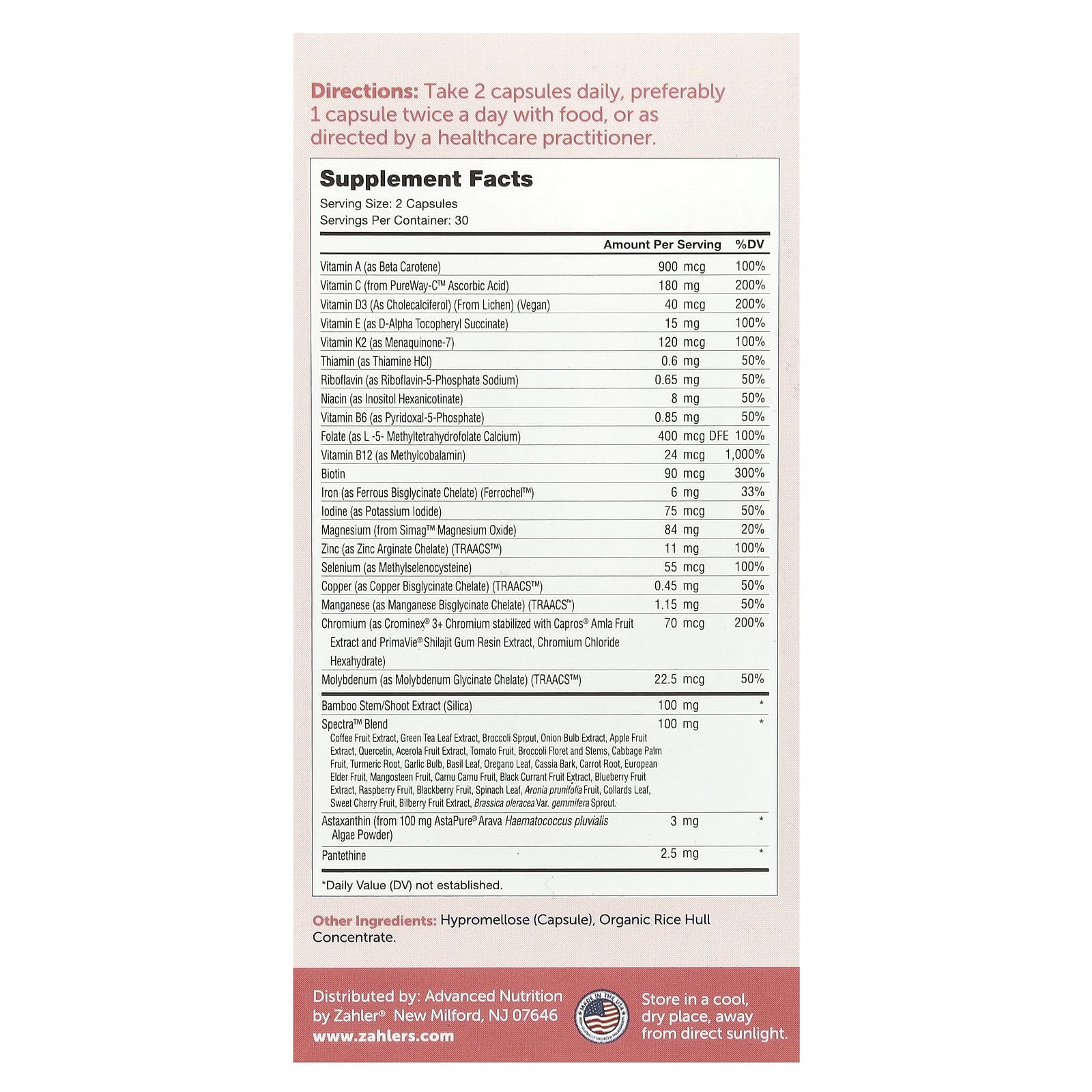 Além de fornecer uma fórmula multinutriente bioativa e pronta para o corpo com Spectra ™, a Multi Beauty apresenta o Arava, um complexo de astaxantina de origem integral para proteção antioxidante e UV, e sílica natural derivada de broto / caule de bambu, a fonte mais rica conhecida de Astaxantina Silício. Esses ativos à base de plantas auxiliam: