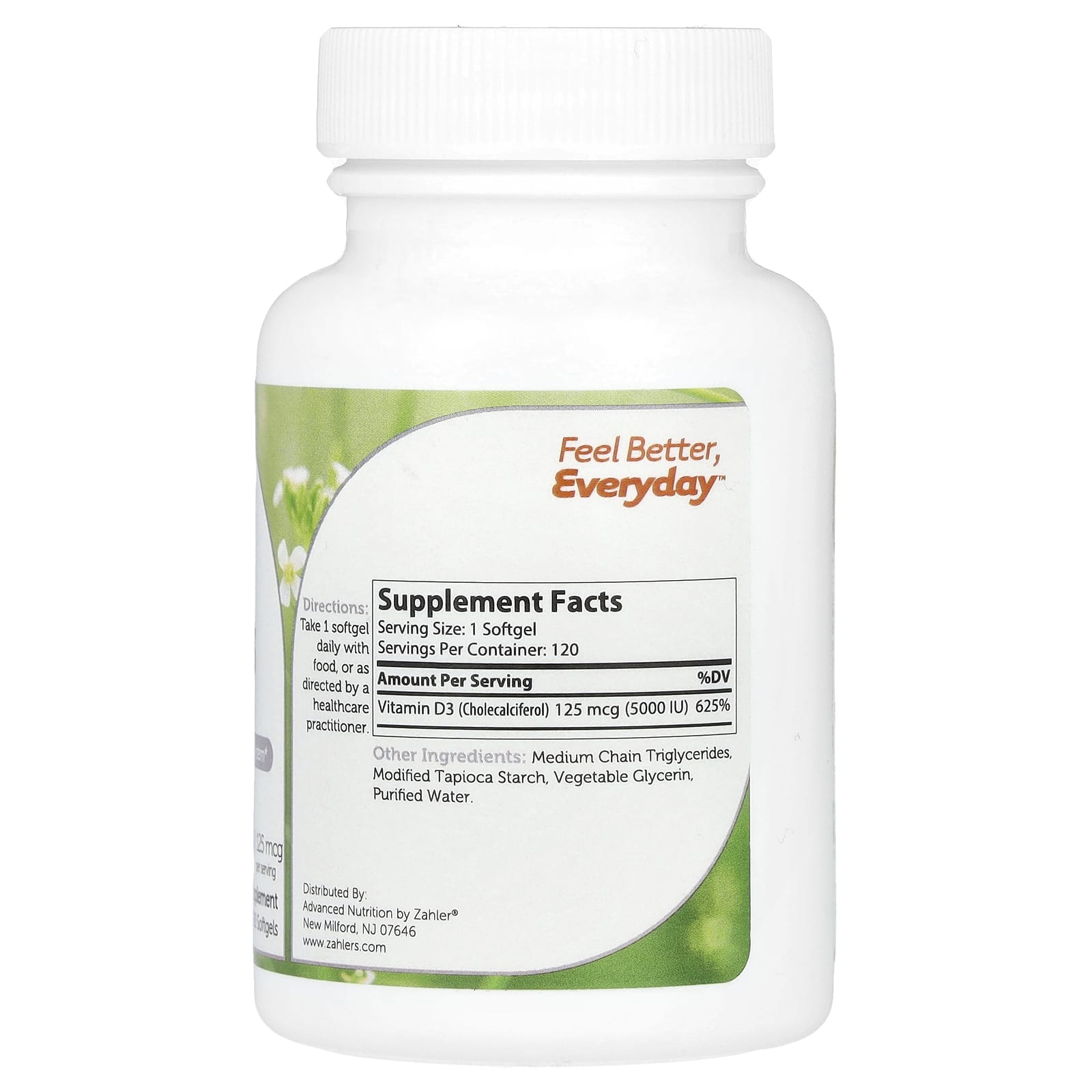 Zahler Vitamina D3 Fórmula D3 Avançada 125 mcg UI (5.000 UI) 120 Cápsulas Softgel