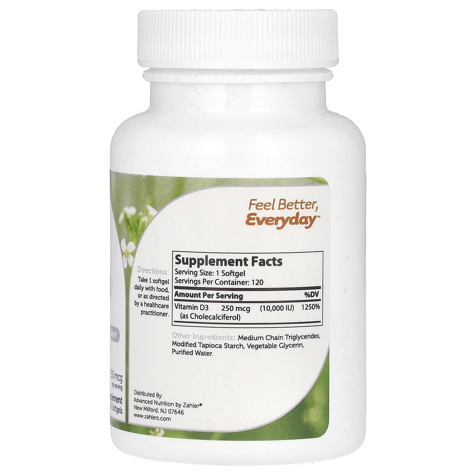 Zahler Vitamina D3 Fórmula D3 Avançada 250 mcg (10.000 UI) 120 Cápsulas Softgel – Zahler Suplementos Vitaminas Vitamina D.