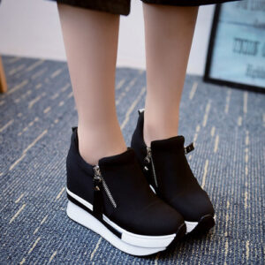 Botas de cuña para mujer Zapatos de plataforma Botas de tobillo sin cordones Zapatos casuales de moda