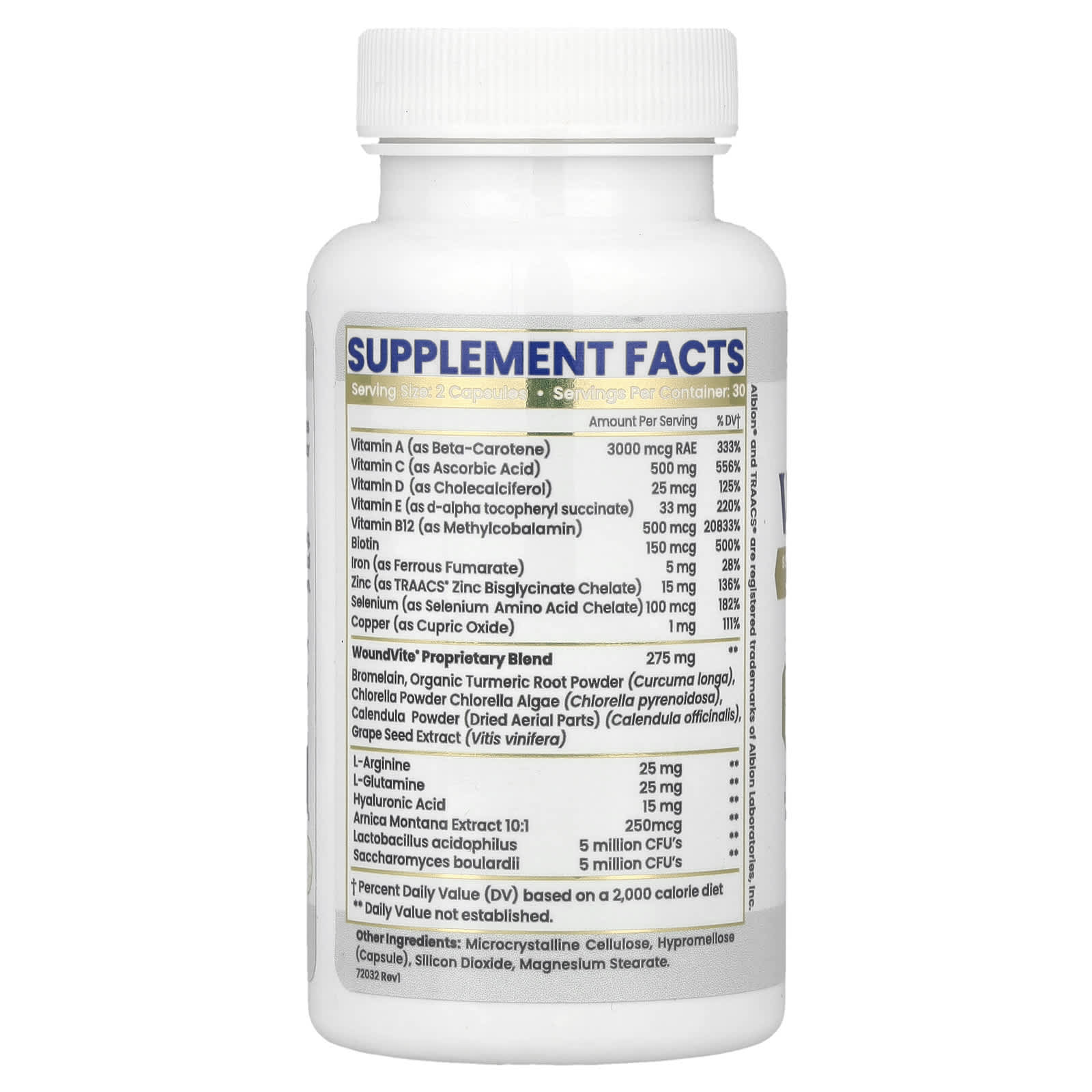 WhoundVite® foi criado por farmacêuticos clínicos e médicos para otimizar o tempo de cura e recuperação, suplementando os principais nutrientes necessários para melhorar o processo de cura. Ele contém 21 ingredientes nutricionais respaldados por pesquisas que auxiliam na cicatrização de feridas, redução de cicatrizes e reparação de tecidos.