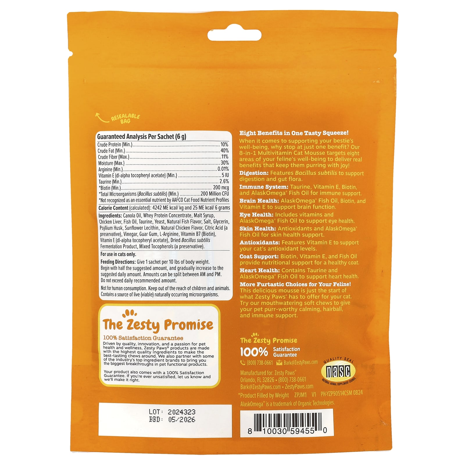 Zesty Paws Mousse Multivitamínica 8 em 1 para Gatos Todas as Idades Frango 14 Sachês 6 g (02 oz) Cada – Zesty Paws Pets Suplementos para pets Suplementos para gatos Vitaminas e minerais para gatos.