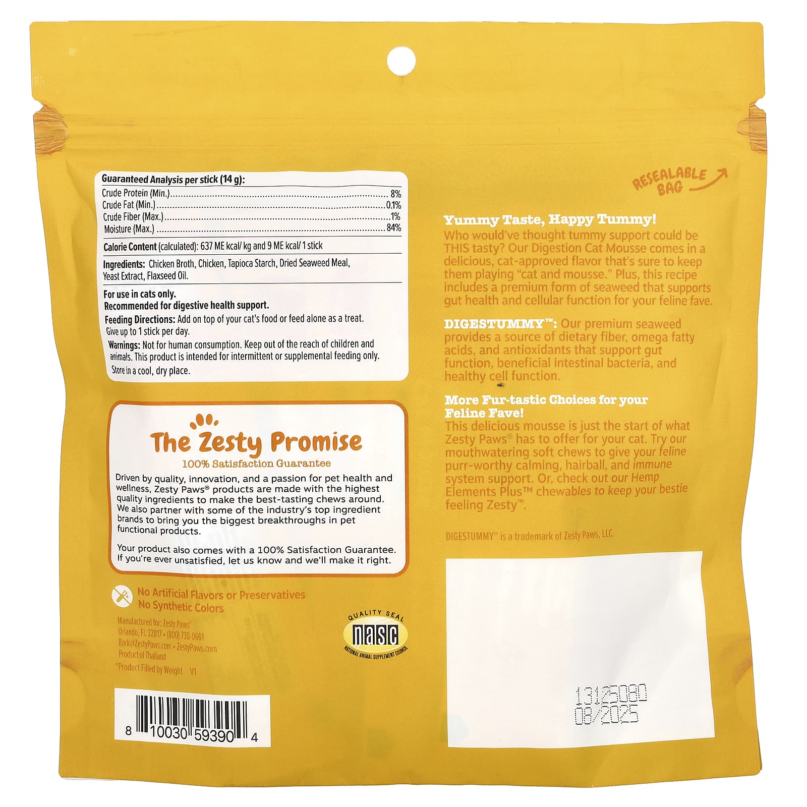 Esta deliciosa mousse é apenas o início do que Zesty Paws® tem a oferecer para seu gato. Experimente as nossas cápsulas mastigáveis de dar água na boca para proporcionar ao seu felino um efeito calmante, contra bolas de pelo e um sistema imunológico capaz de ronronar. Ou confira nossos comprimidos mastigáveis Hemp Elements Plus™ para manter sua melhor companheira com a sensação de Zesty™.
