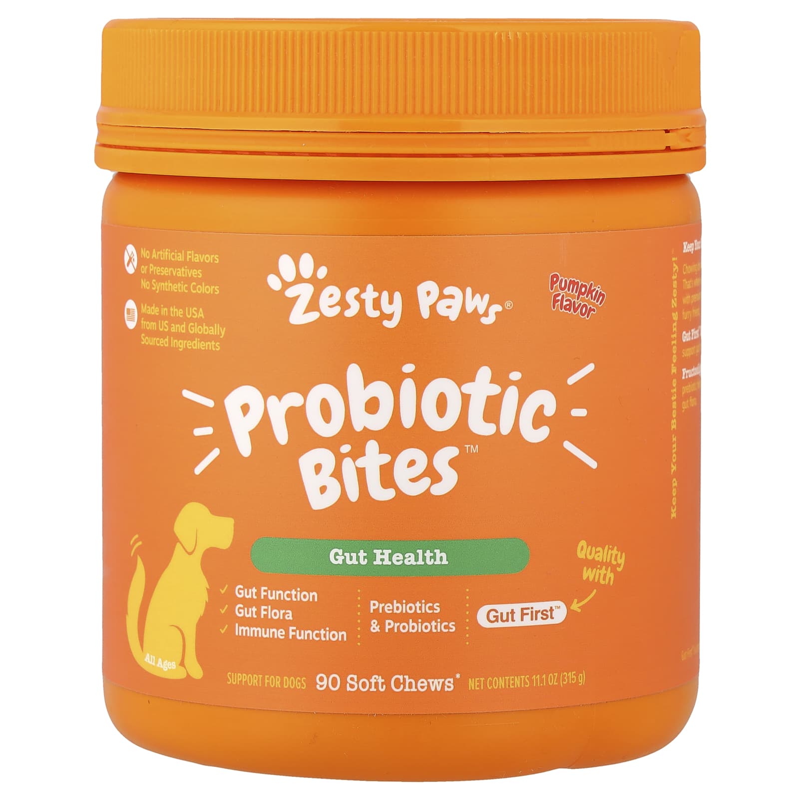 Zesty Paws Probiotic Bites™ Para Cães Todas as Idades Abóbora 90 Cápsulas Mastigáveis 315 g (111 oz) – Zesty Paws Pets Suplementos para pets Suplementos para cães Probióticos para cães.