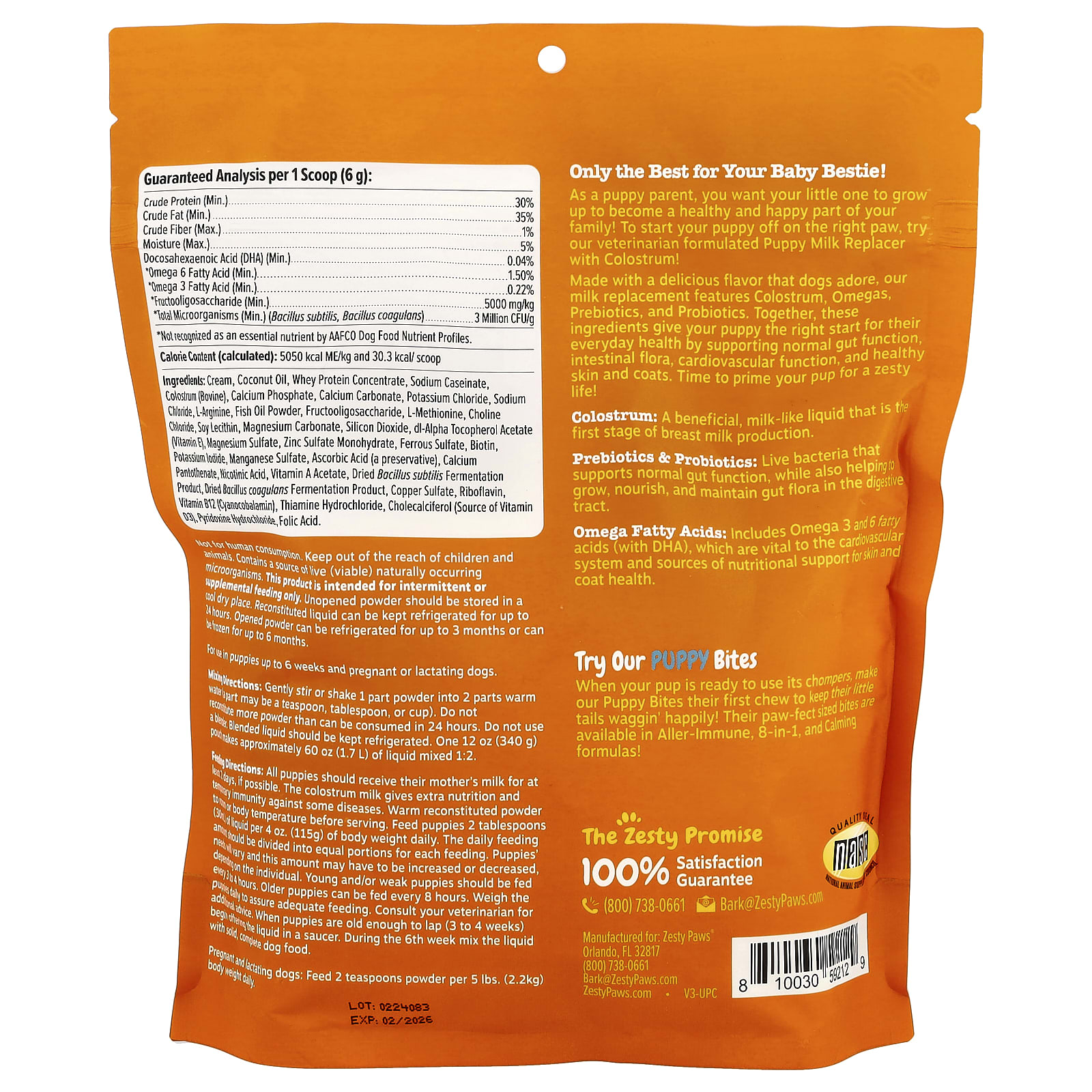 Zesty Paws Substituto de Leite para Cachorros + Colostro Para Cães 0 a 6 Meses de Idade 338 g (12 oz) – Zesty Paws Pets Suplementos para pets Suplementos para cães.