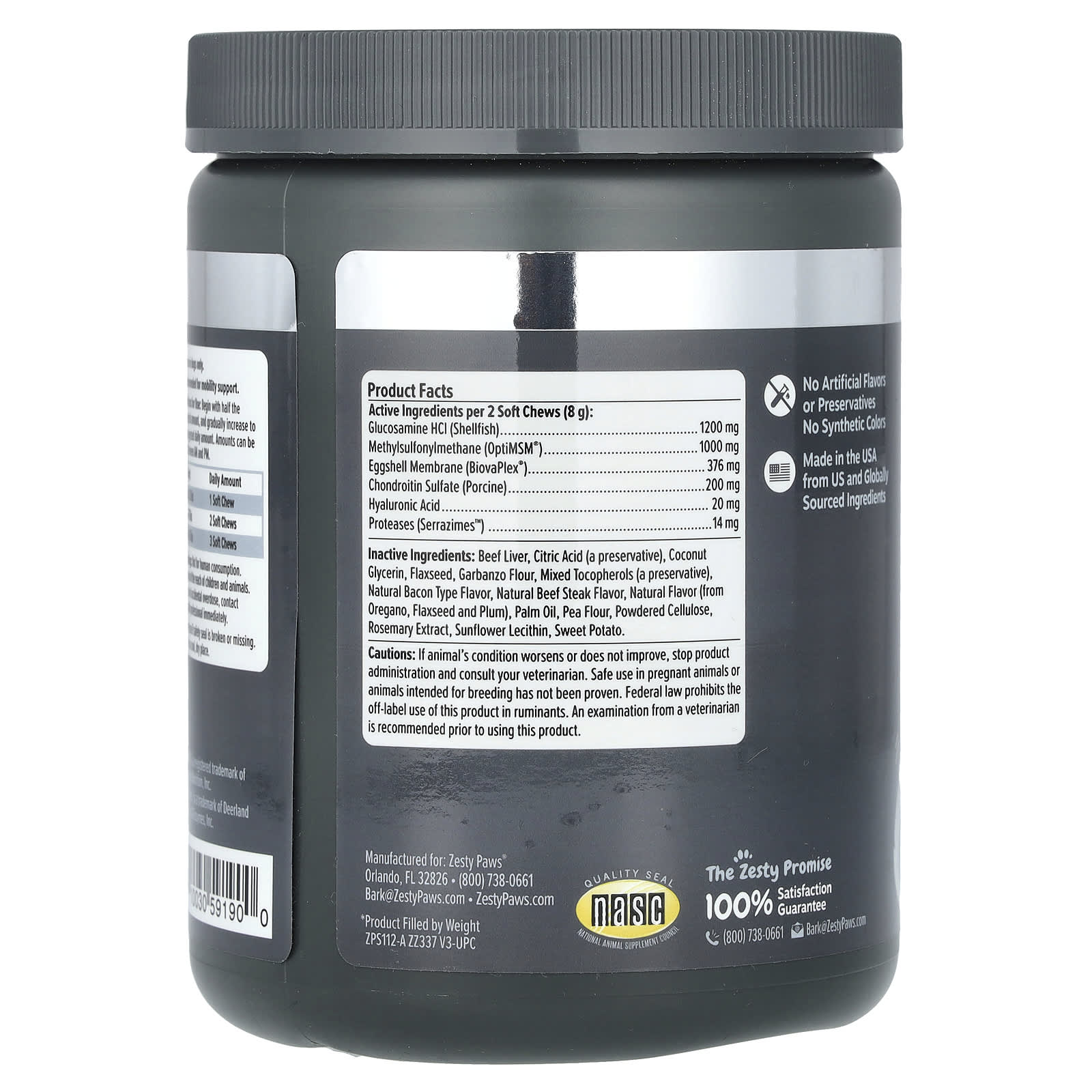 Zesty Paws Vet Strength Bites para Quadri e Articulações Para Cães Todas as Idades Carne e Bacon 90 Cápsulas Mastigáveis 360 g (126 oz) – Zesty Paws Pets Suplementos para pets Suplementos para cães Apoio para quadril e articulações de cães Vitaminas e minerais para cães.