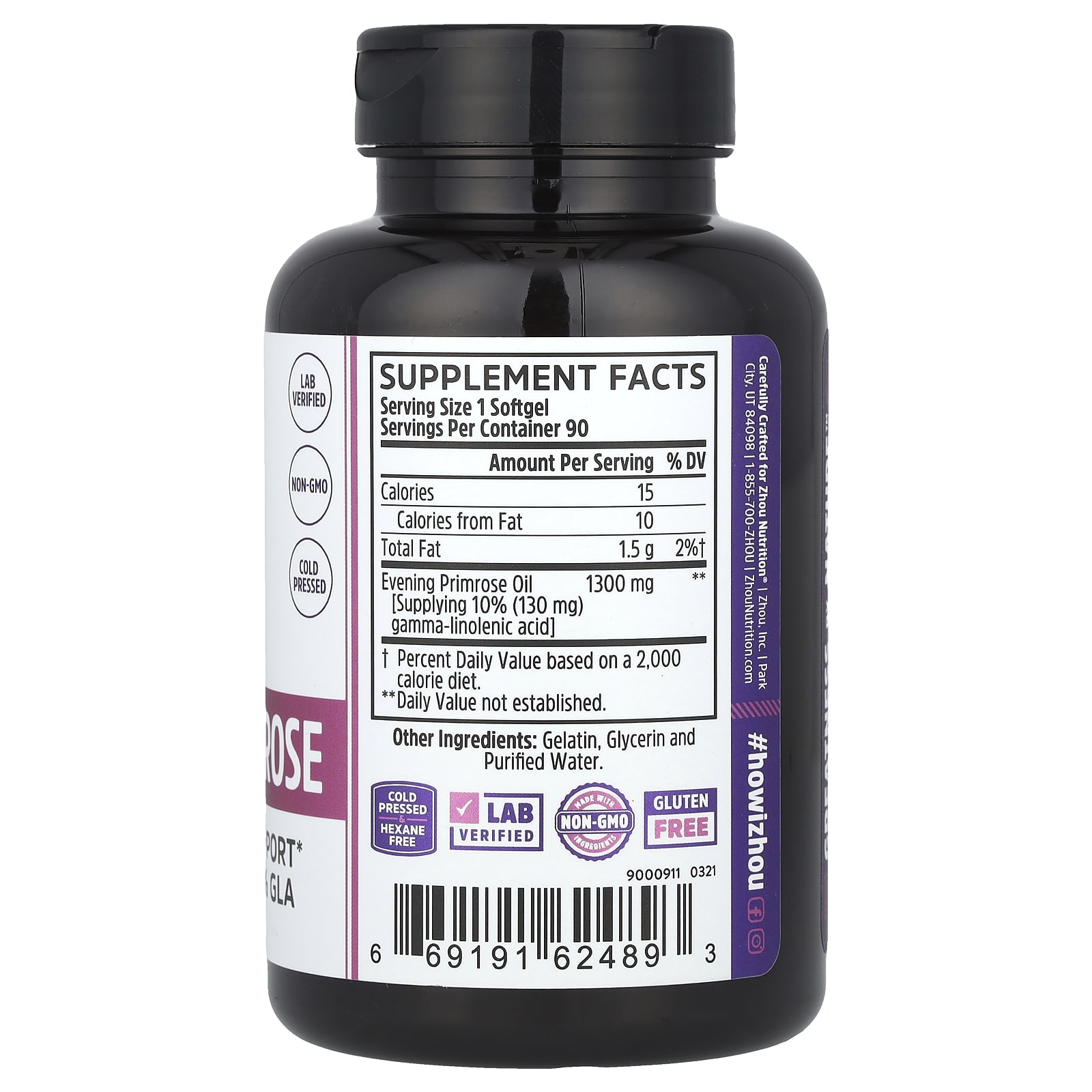 Zhou Nutrition Prímula 90 Cápsulas Softgel – Zhou Nutrition Suplementos Saúde da Mulher Óleo de Prímula.