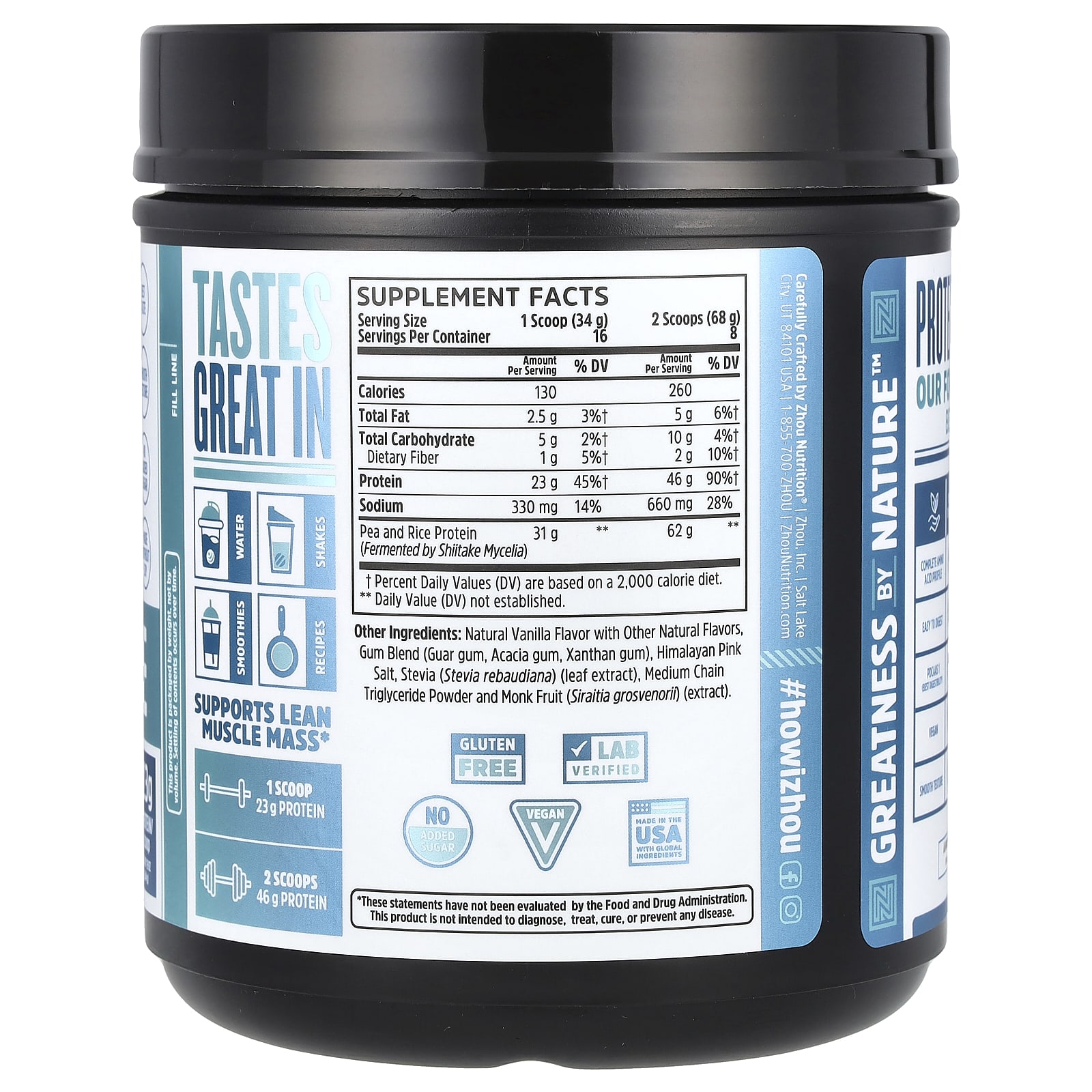 Zhou Nutrition Proteína à Base de Plantas Completa Digestibilidade Perfeita Baunilha 544 g (19 oz) – Zhou Nutrition Nutrição Esportiva Proteína Proteína Vegetal Mistura Proteica à Base de Plantas.
