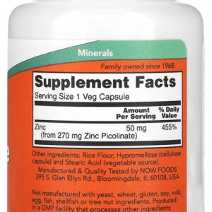 Zinco Picolinato 50mg Now Foods Zinc Picolinate 60 Veg Caps – No Brasil