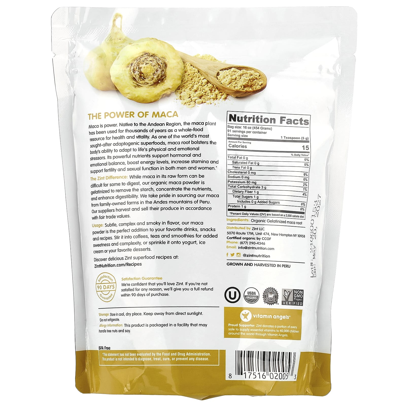O Diferencial da Zint: Embora a maca-peruana em sua forma crua possa ser de difícil digestão para algumas pessoas, nossa maca-peruana orgânica em pó é gelatinizada para remover o amido, concentrar os nutrientes e aumentar a digestibilidade. Temos orgulho em obter nossa maca-peruana de fazendas familiares nas montanhas dos Andes do Peru. Nossos fornecedores colhem e vendem seus produtos de acordo com valores de comércio justo.