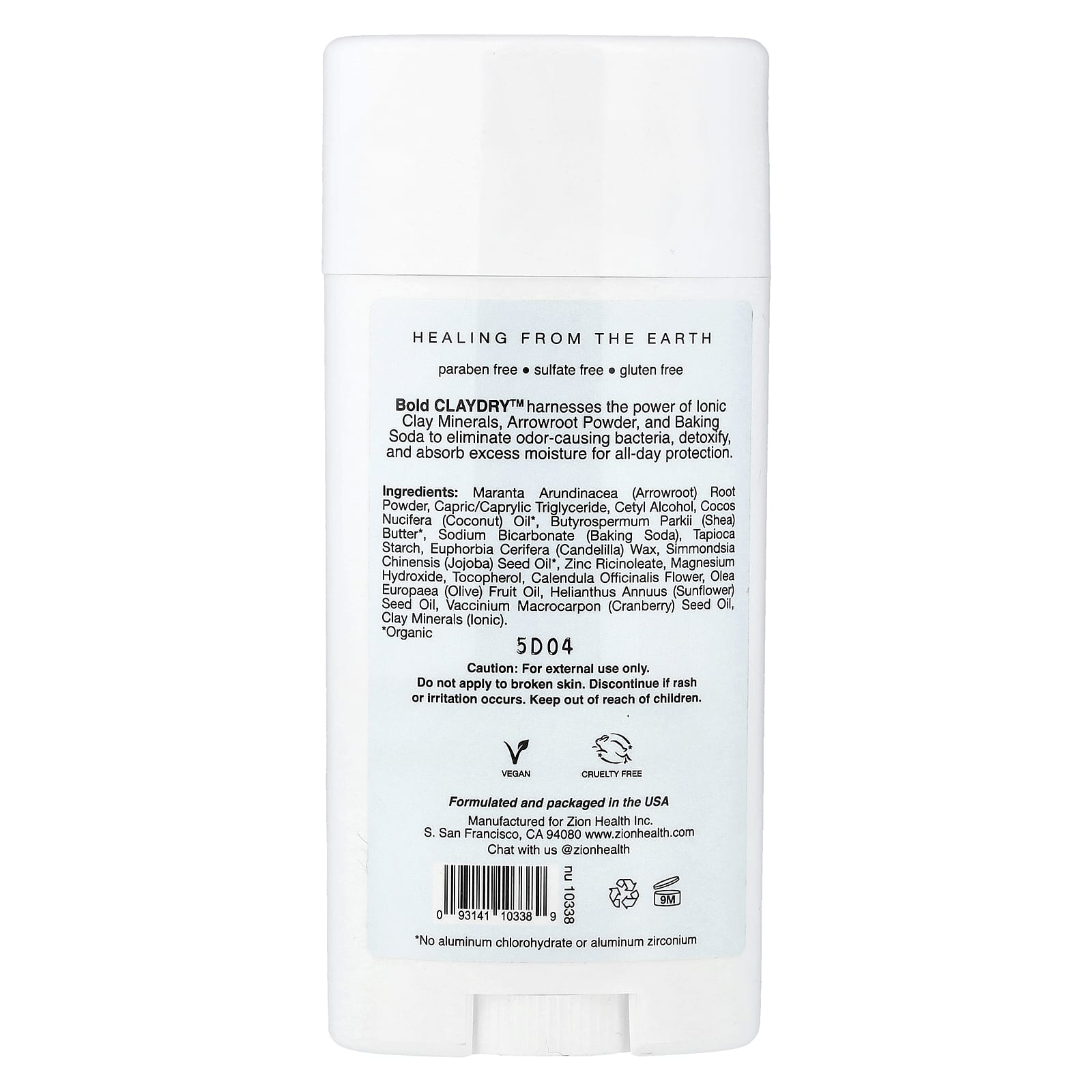 Zion Health Bold Desodorante ClayDry Sem Perfume 80 g (28 oz) – Zion Health Cuidados Pessoais Cuidados Íntimos Desodorante.