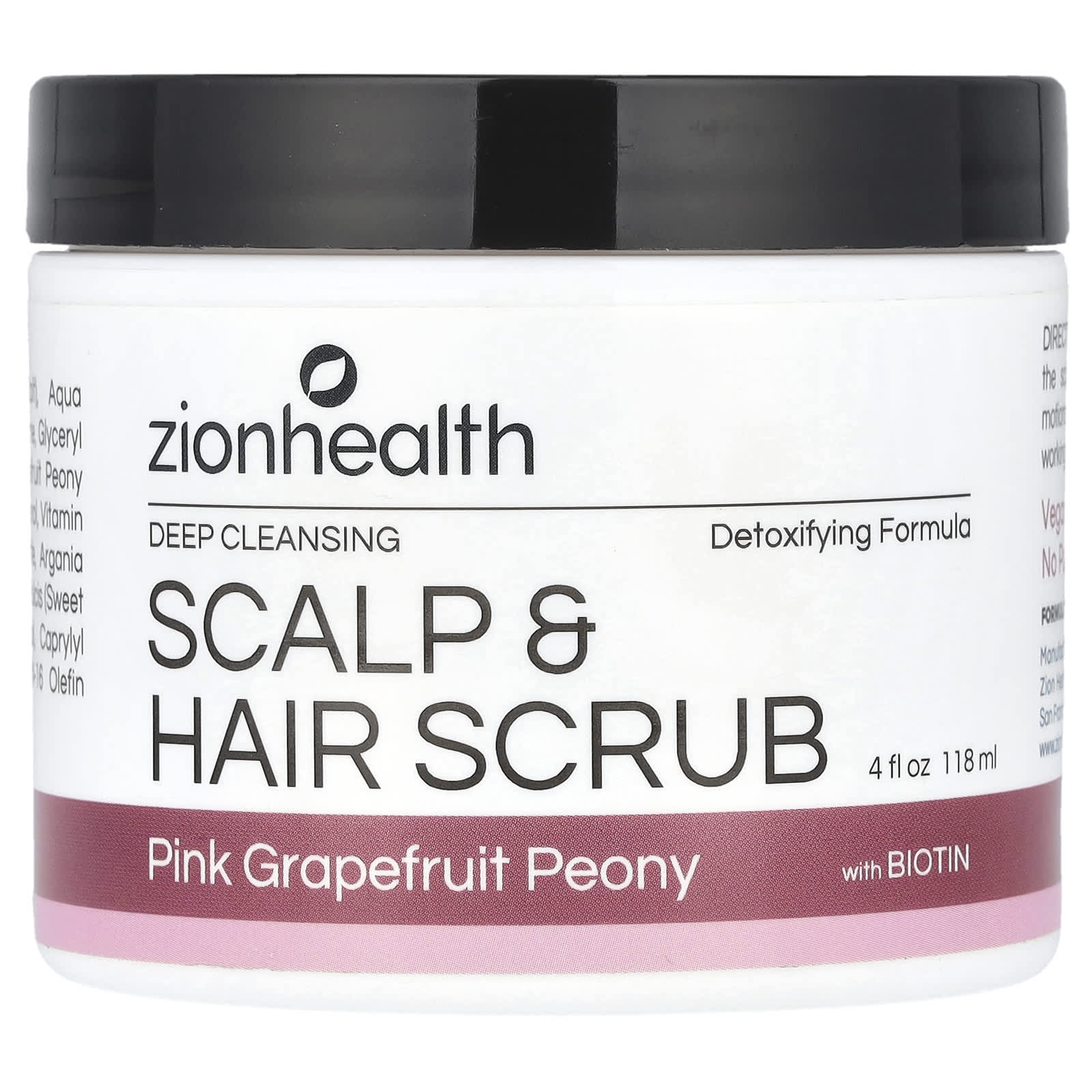 Zion Health Esfoliante com Biotina para Cabelo e Couro Cabeludo Peônia e Toranja Rosa 118 ml (4 fl oz) – Zion Health Banho e Cuidados Pessoais Cabelos Tratamentos capilares.