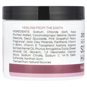 Cloreto de sódio (sal), aqua (água purificada), cocoamidopropilbetaína, monoestearato de glicerila, decylglucoside, fragrância de peônia e toranja rosa*, minerais de argila iônica, pantenol, biotina (vitamina H), vitamina E acetato de tocoferol, óleo do grão de Argania spinosa, óleo de Prunus amygdalus dulcis (amêndoa doce), glicerina, 1,2 hexandiol, caprylyl glycol, citrato de sódio, sodium c 14-16 olefin sulfonate, goma xantana.