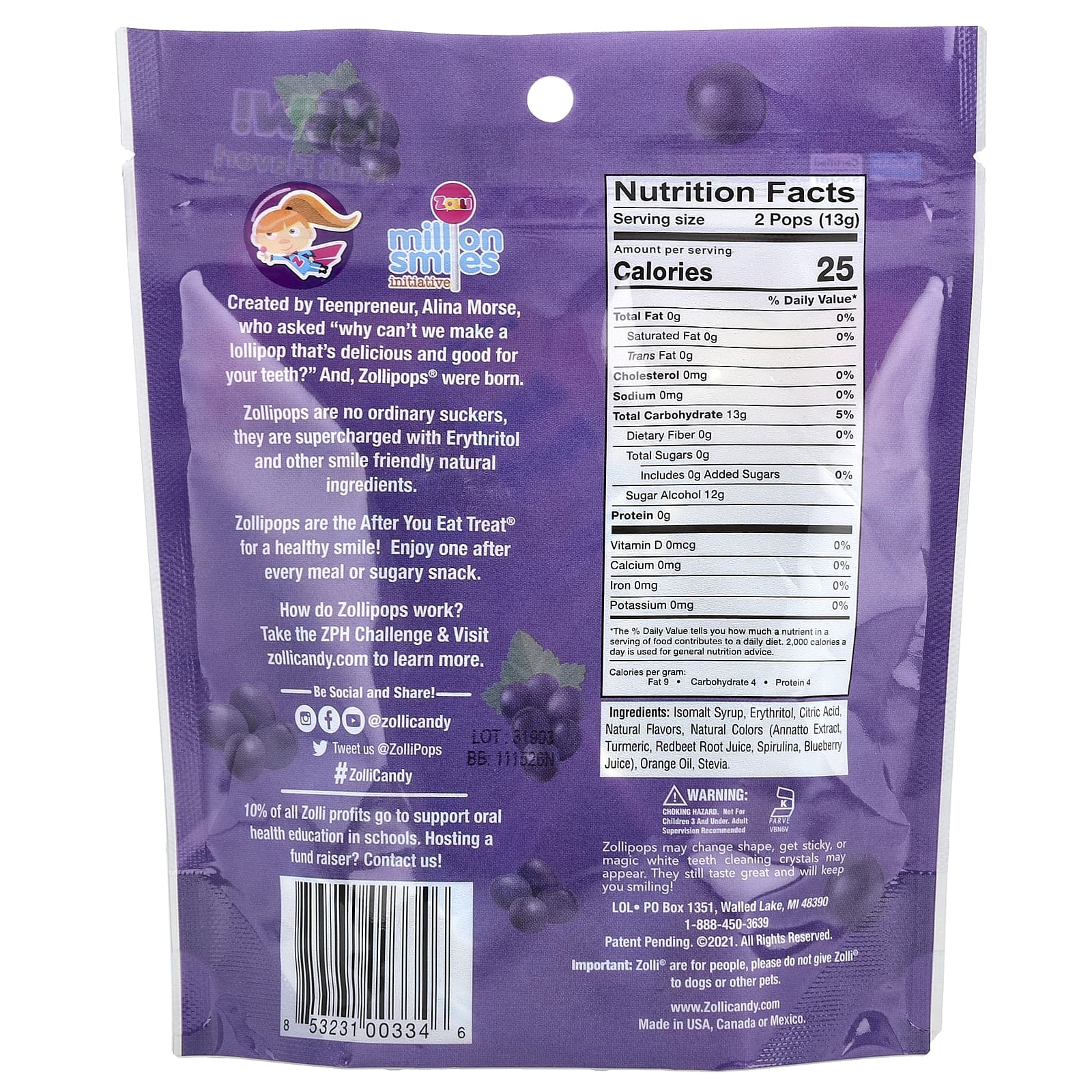 Criado pela jovem empreendedora, Alina Morse, ao se perguntar: “Por que não criar um pirulito que é delicioso e também bom para os dentes?” Assim, nasceram os Zollipops®.