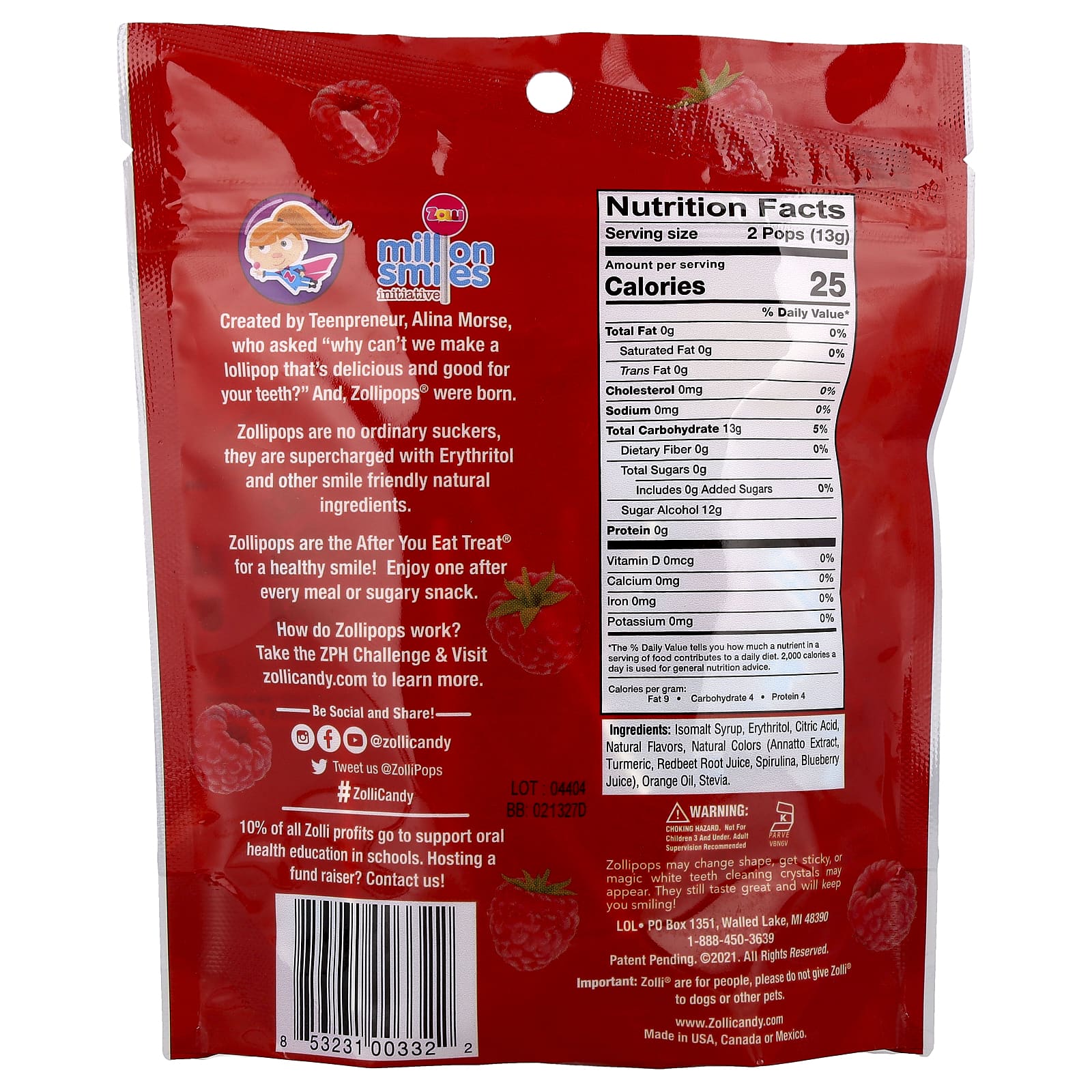 Criado pela Teenpreneur, Alina Morse, que perguntou “Por que não podemos fazer um pirulito que é delicioso e bom para seus dentes?” E os Zollipops® nasceram.