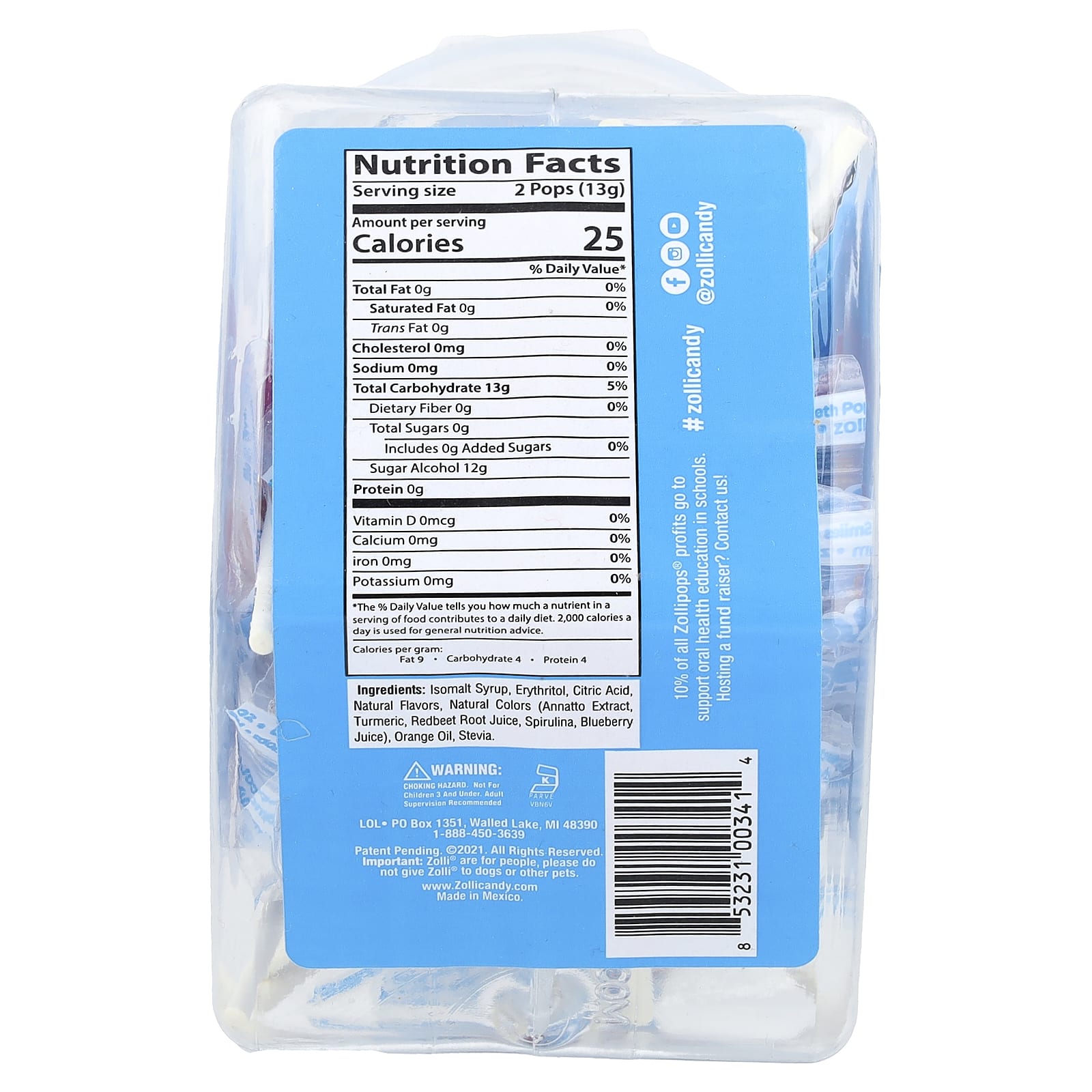 Pirulitos deliciosos que são aprovados para mães, crianças, classe e dentistas. Nosso doce antialérgico não tem corantes artificiais, não contém açúcar e tem sabores totalmente naturais, o que torna os Zollipops a guloseima perfeita para a classe, a adição à lancheira, o treinamento para o banheiro, a recompensa por etapas ou apenas um doce que faz bem aos seus dentes.