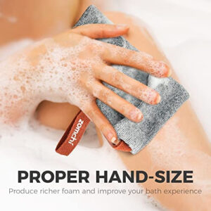 Para diferentes necessidades: a nova bolsa de sabão atualizada da ZOMCHI contém uma áspera e uma macia para atender a diferentes necessidades de esfoliação. O saco de sabonete áspero é adequado para adultos com pele áspera, seca e escamosa que desejam um esfoliante ótimo para pés e cotovelos. O saco de sabonete macio é indicado para quem deseja uma esfoliação suave, especialmente para crianças e mulheres.