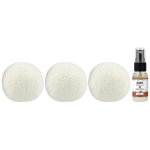 ZUM Bolas de Secagem de Lã com Mistura de Aroma Âmbar 3 Bolas de Lã mais 1 Mistura de Aroma 85 oz – ZUM Casa Limpeza Produtos para lavanderia Amaciantes de Roupas e Lenços para Secadora.